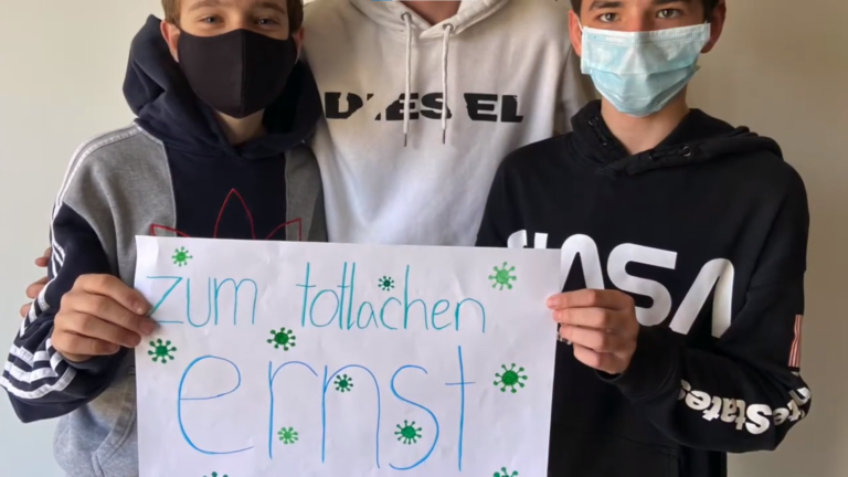 Mit Sätzen wie «Gemeinsam sind wir einsam» oder «Immer nur Chat, ist auch nicht so nett» rappten die Schüler*innen der Oberstufe im Musikunterricht bei Cathryn Lehmann gegen den Corona Frust.